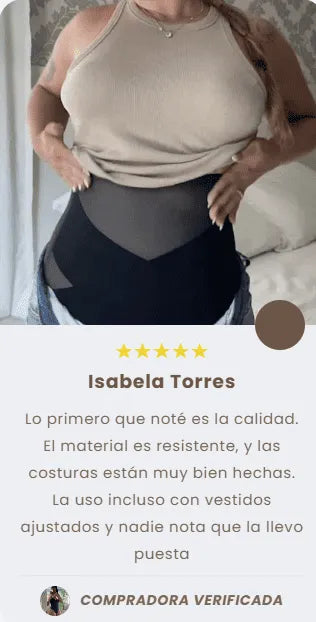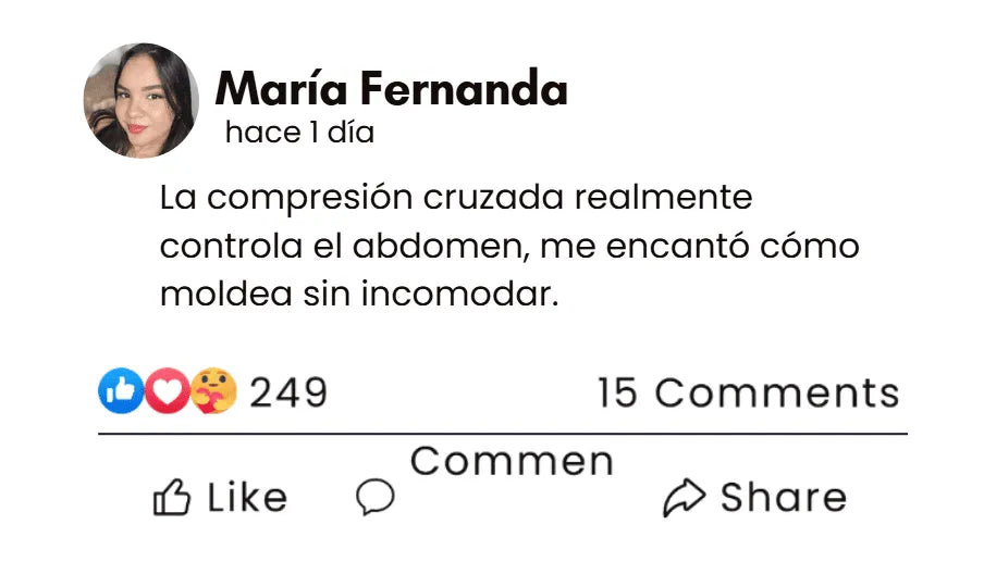 Gracias a su diseño de compresión cruzada, esta faja ofrece una sensación de ajuste cómodo en la zona media, contribuye a una experiencia discreta bajo la ropa y brinda una percepción de soporte ideal para el uso diario, manteniendo confort y libertad de movimiento.