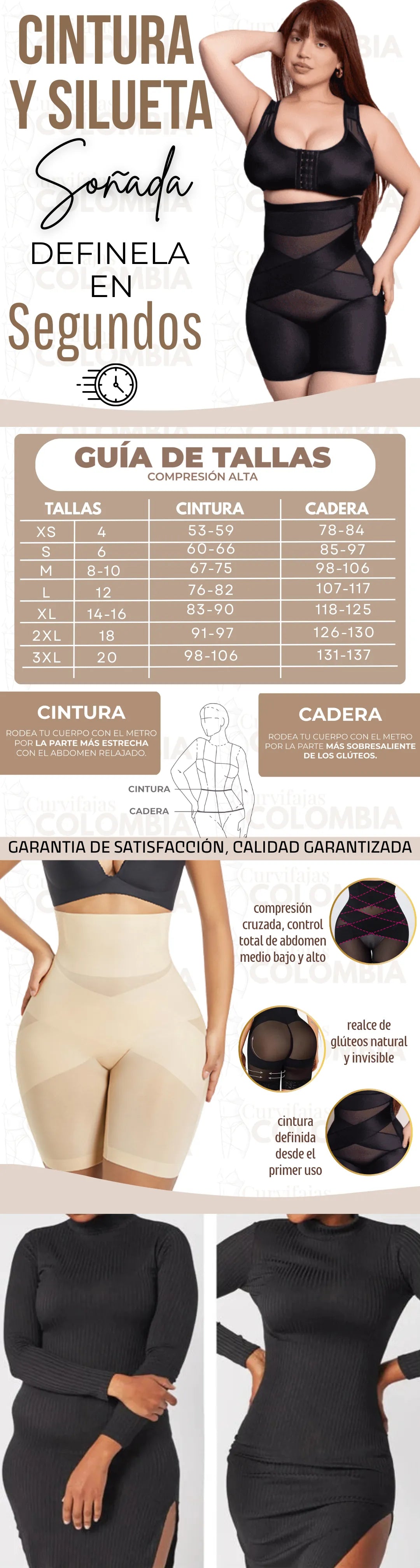 Solo necesitas tu contorno de cintura y cadera para elegir la talla correcta. Si tienes dudas, escríbenos por WhatsApp y te ayudamos a escoger la ideal para ti.
